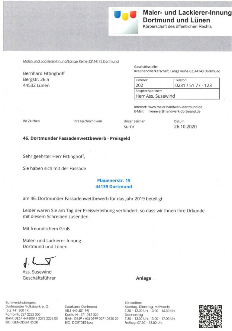 Auf eine über 100-jährige Firmengeschichte blickt unser Malerbetrieb an der Bergstr. 36a zurück. Damit sind wir einer der ältesten Familienbetriebe im Bereich des Malerhandwerks in Lünen.